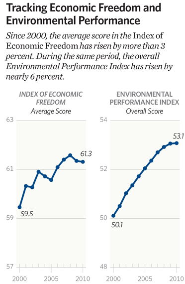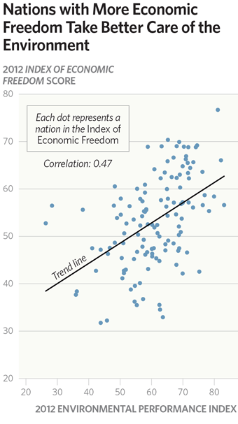 V sumáre teda ekonomická sloboda klesne. No podobne ako pri zdravotníctve, aj pri životnom prostredí existuje veľmi silná korelácia medzi ekonomickou slobodou a starostlivosťou o životné prostredie: